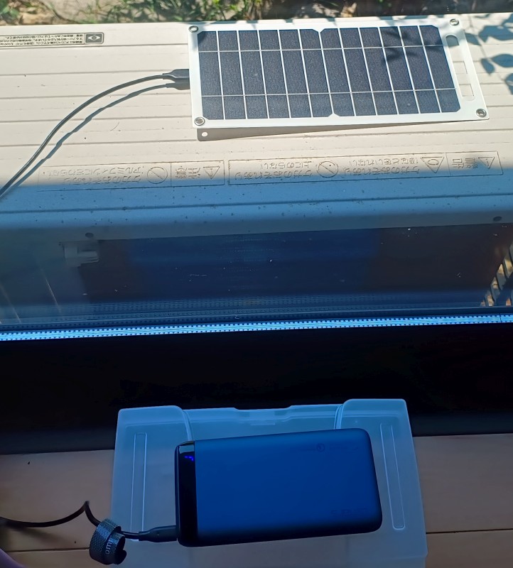 外はめっちゃ暑(熱)くて、モバイルバッテリーがヤバいことになりそうだったのでこうなった。